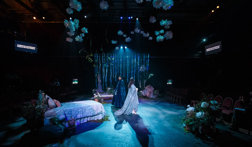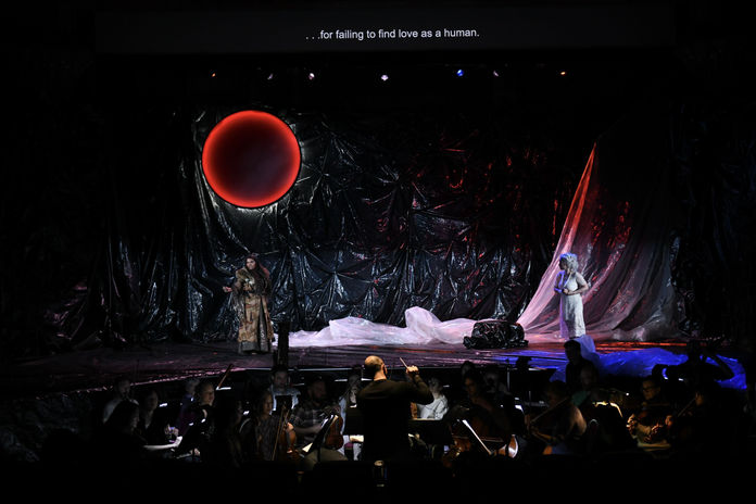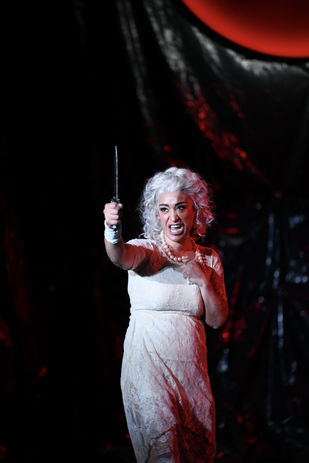 "For Pittsburgh Opera, director Kaley Karis Smith and set designer Samantha Pollack have created a garden of delight with large white blossoms suspended from the ceiling and cascades of flowers framing the action. Evocative lighting creates an air of mystery and suspense as rapture evolves into tragedy. ... Smith introduced a human embodiment of the Rose, enacted by dancer Grace Lopez. Although she never made a sound, Lopez communicated the ecstasy and horror of the doomed lovers through her face and body."